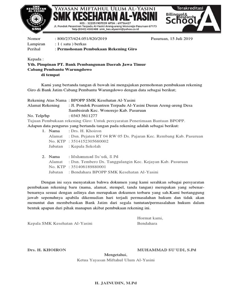 Contoh surat permohonan pembukaan rekening bumdes. Contoh surat pernyataan untuk buka rekening bank contoh surat. Rincian contoh surat permohonan pembukaan rekening giro bank bni.doc ada 9 halaman contoh surat permohonan pembukaan rekening giro bank bni . Membuka rekening atas nama organisasi. Dengan hormat, yang bertanda tangan dibawah ini :